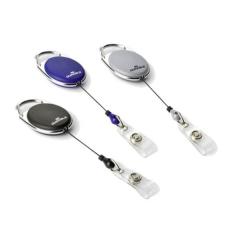 • stylowy owalny mechanizm ściągający z metalowym klipem na tylnej ściance • umożliwia szybki i łatwy dostęp do karty lub identyfikatorów DURABLE z otworami na klip • długość linki: 80 cm