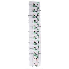• naścienny stojak na broszury A4 składający się z 6, 10 lub 15 elementów, które są w stanie pomieścić bardzo dużą ilość katalogów, ulotek i broszur do formatu A4 • dzięki ergonomicznemu ułożeniu nie zajmuje wiele miejsca w pomieszczeniu