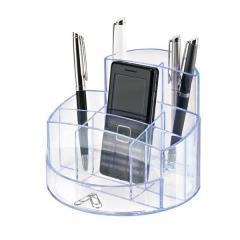 • z trwałego polistyrenu • powierzchnie o wysokim połysku • 2 wysokie i 6 mniejszych przegródek • 1 przegródka na drobne akcesoria • 1 przegroda na karteczki, koperty • stabilny • wymiary: 140 x 140 x 109 mm