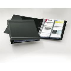 • z matowej folii • mieszczący do 400 wizytówek w 20-stu dwustronnych koszulkach • wymiar kieszonki 57x90 mm • mechanizm ringowy oraz 12 przekładek z indeksami alfabetycznymi A-Z • koszulki na wizytówki można dowolnie wpinać i wypinać • maksymalnie może pomieścić do 30-stu koszulek (600 wizytówek)