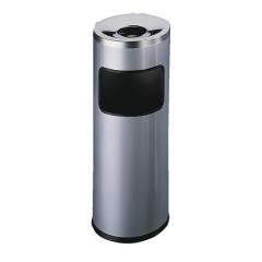 Metalowy elegancki 17-litrowy kosz na śmieci z 2-litrową popielnicą. Wykonany z metalu. Specjalna samogasząca ogień pokrywa aluminiowa odcina dopływ tlenu do kosza i tym samym stopniowo gasi płomień. Nadaje się do użytku w pomieszczeniach lub na zewnątrz pod zadaszeniem. Idealny do miejsc wyznaczonych dla osób palących oraz przy wejściu do budynku. Wymiary pokrywy samogaszącej: 60x240mm. Wymiary pojemnika wewnętrznego: 380x220mm